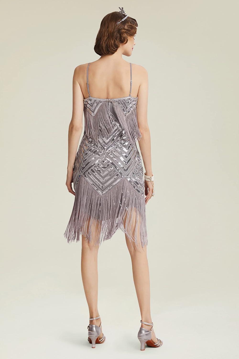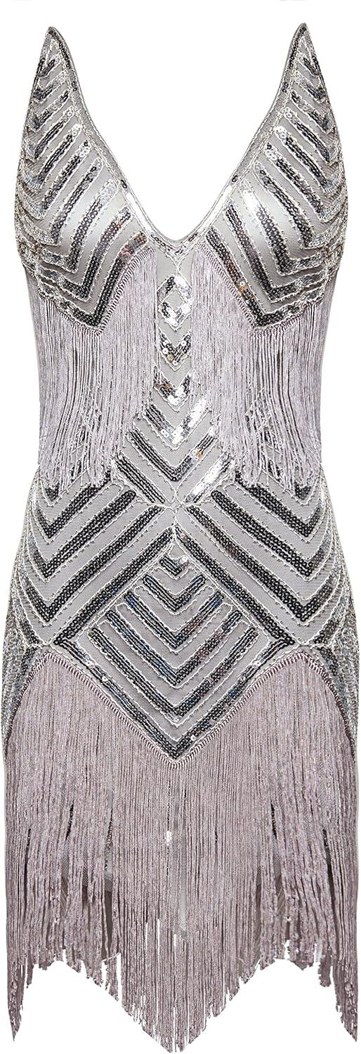 BABEYOND Women’s 1920s Flapper Dress V Neck Slip Dress Roaring 20s Great Gatsby Dress for Party(Light Gray)
