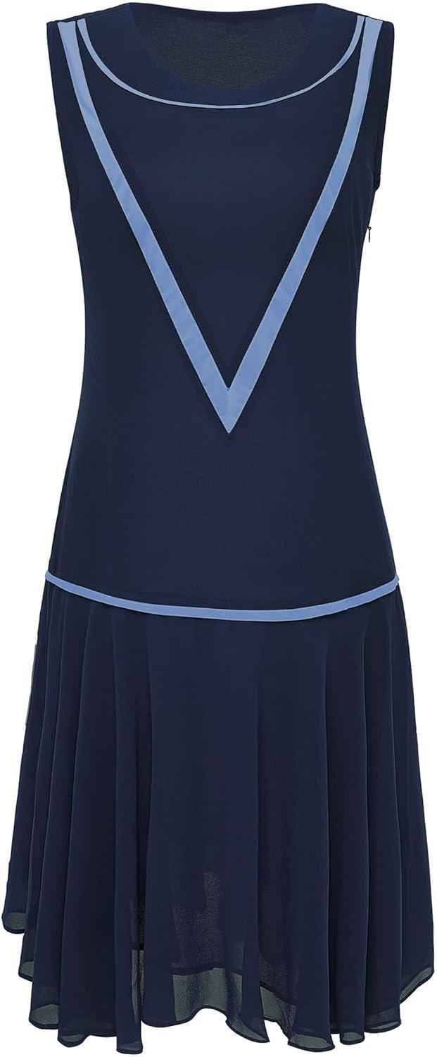 BABEYOND Women’s 1920s Inspired Dress – Flapper Dress Low-Waist Dress Sleeveless Party Chiffon Dress for Women(Navy)