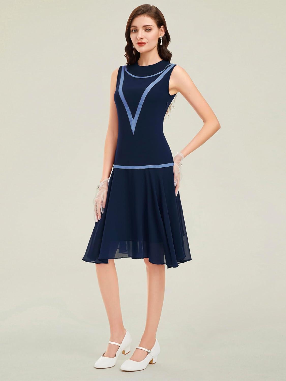 BABEYOND Women’s 1920s Inspired Dress - Flapper Dress Low-Waist Dress Sleeveless Party Chiffon Dress for Women(Navy)