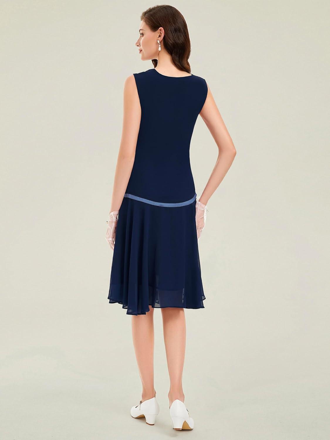 imageBABEYOND Womens 1920s Inspired Dress  Flapper Dress LowWaist Dress Sleeveless Party Chiffon Dress for WomenNavy