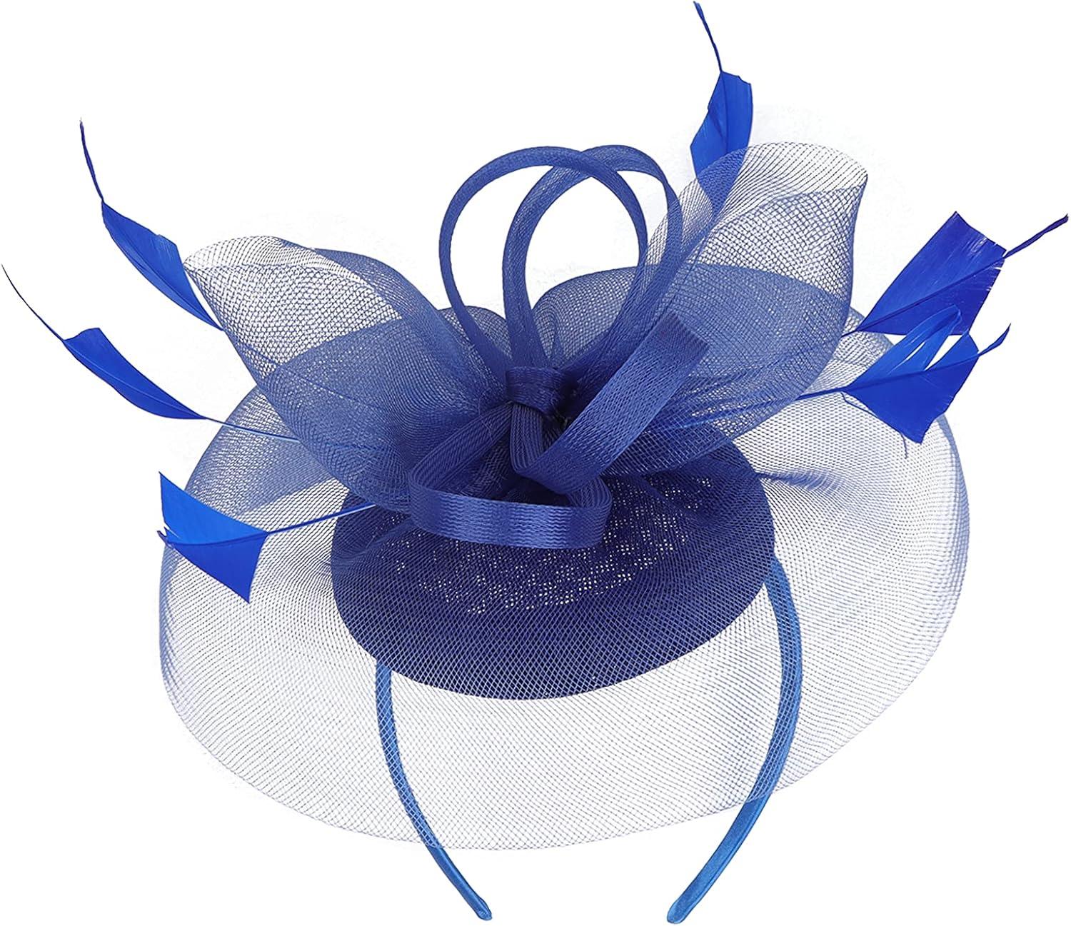 BABEYOND Women’s Fascinator Hat Kentucky Hat Feather Derby Fascinator Tea Party Hat for Cocktail Wedding(Blue)