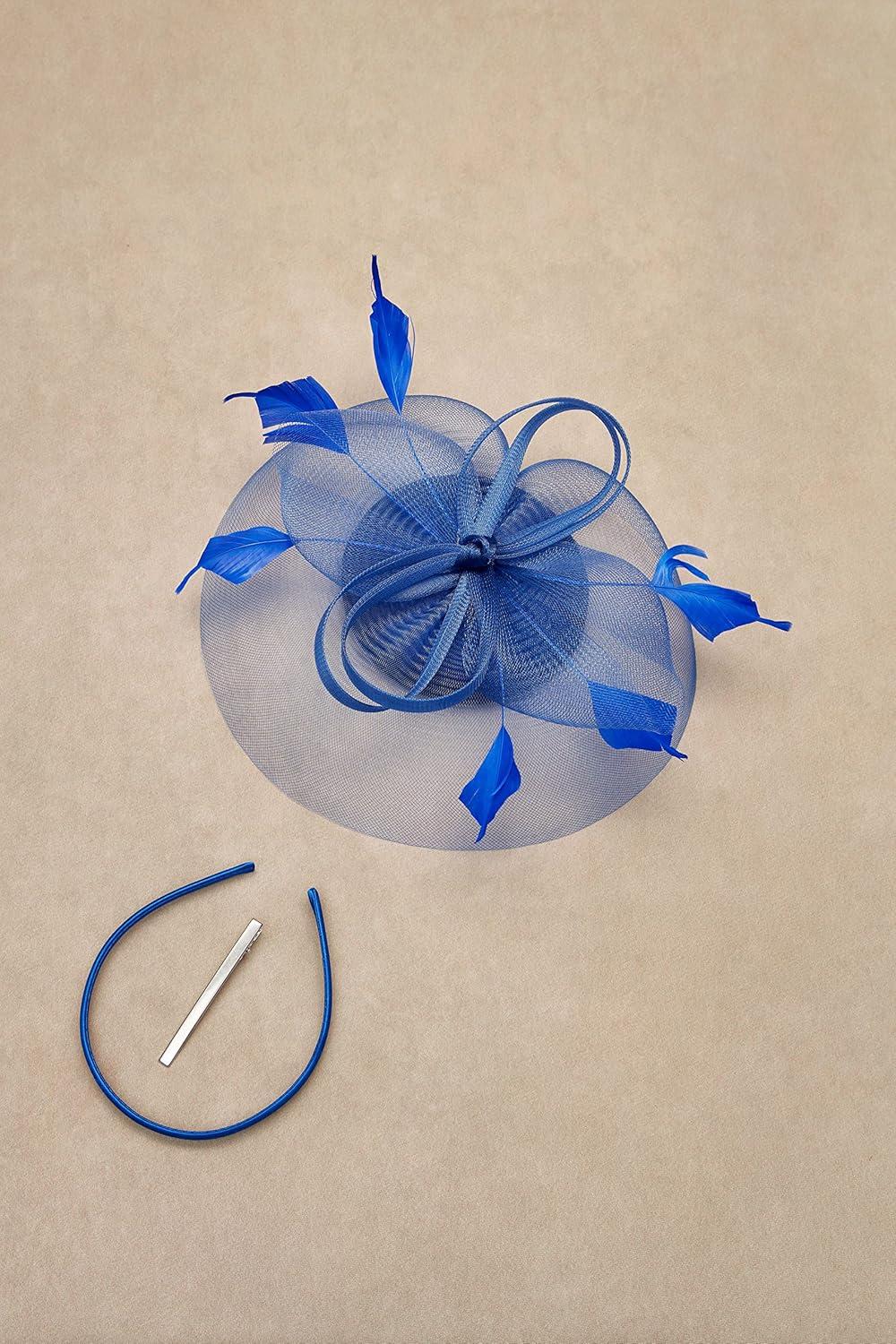 BABEYOND Women's Fascinator Hat Kentucky Hat Feather Derby Fascinator Tea Party Hat for Cocktail Wedding(Blue)