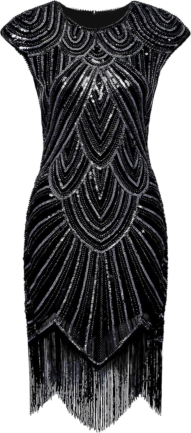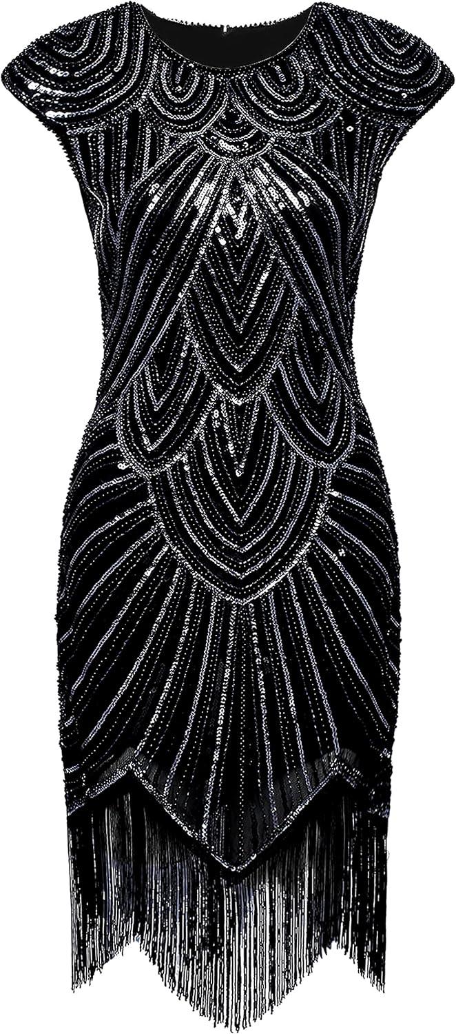 imageBABEYOND Womens Flapper Dresses 1920s Beaded Fringed Great Gatsby DressBlack