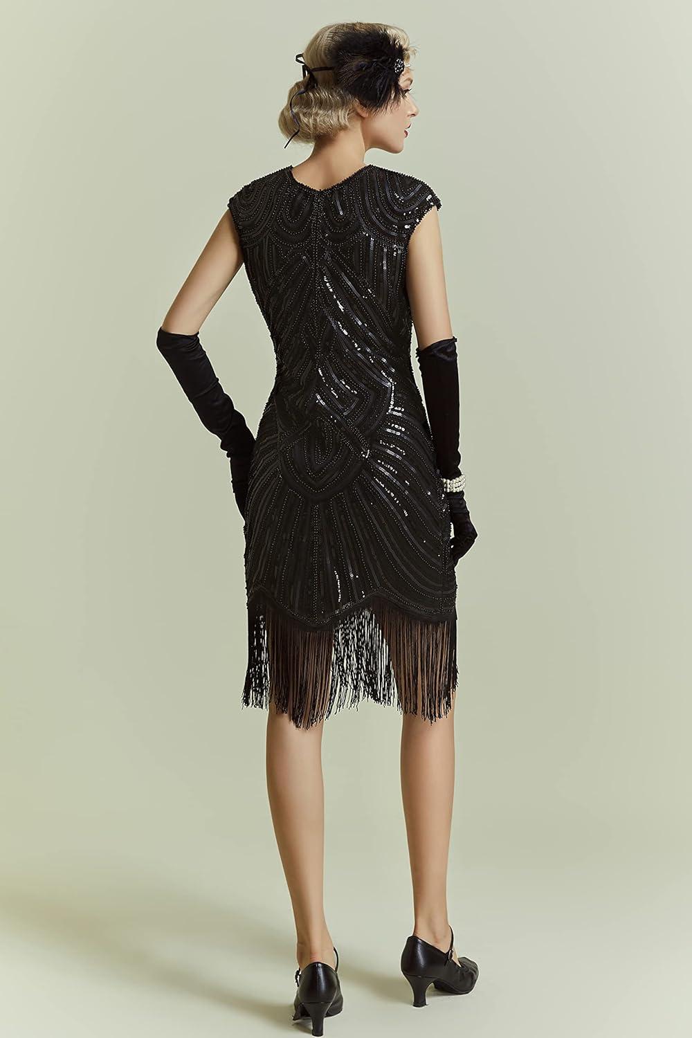 BABEYOND Women's Flapper Dresses 1920s Beaded Fringed Great Gatsby Dress(Black)