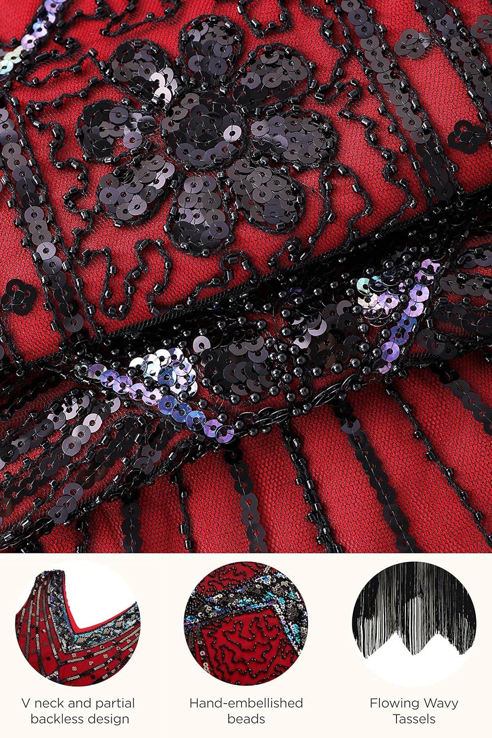 BABEYOND Women's Flapper Dresses 1920s V Neck Beaded Fringed Great Gatsby Dress(Red)