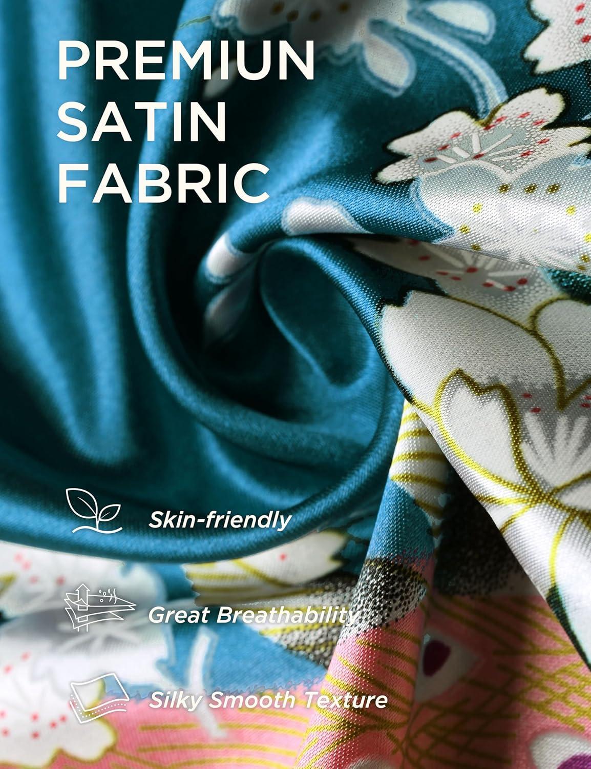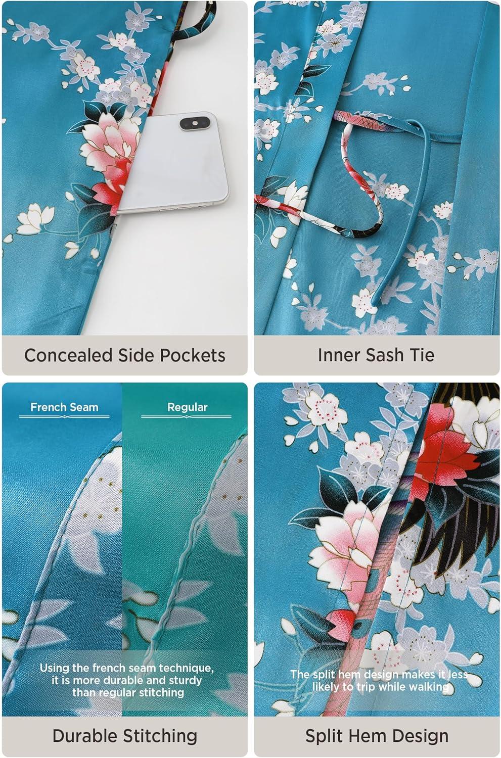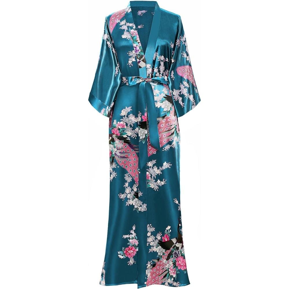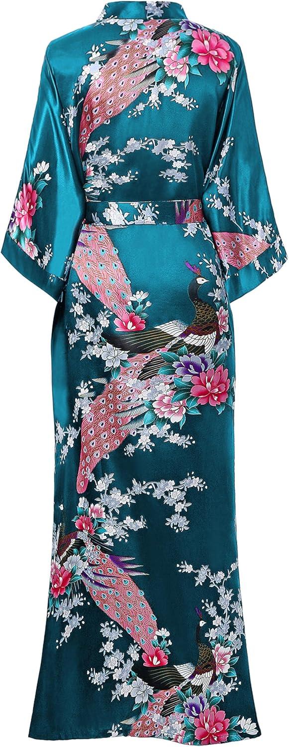 BABEYOND Women’s Kimono Robe Long Satin Robes with Peacock and Blossoms Printed Kimono Nightgown(Turquoise)