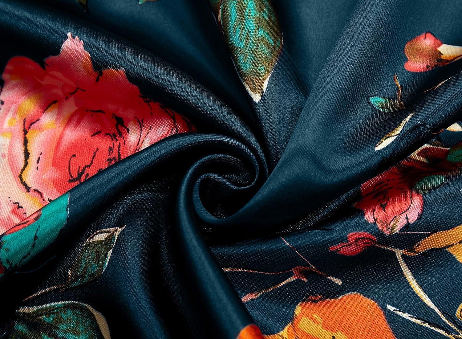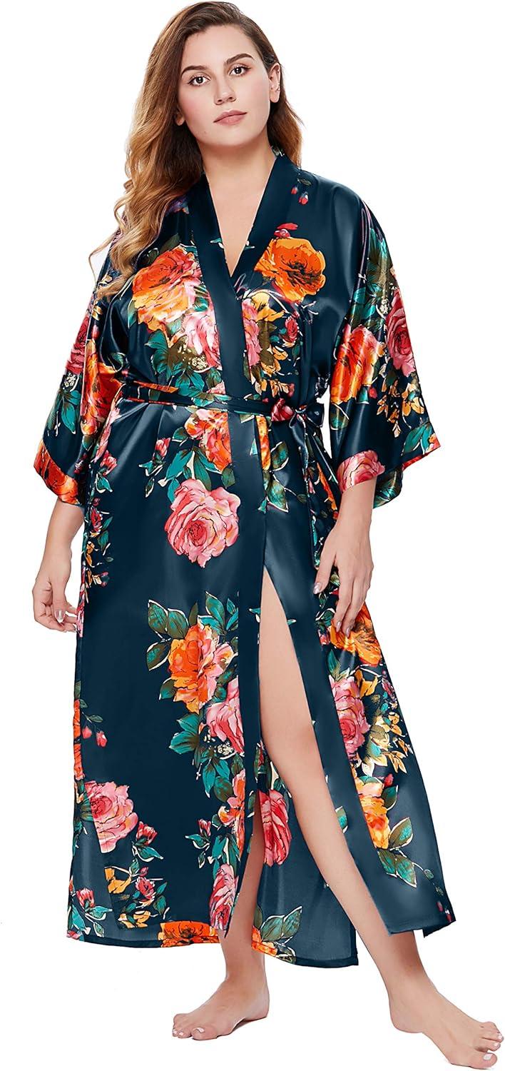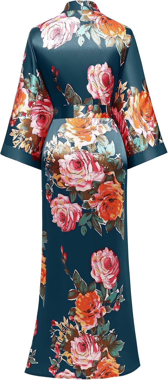 BABEYOND Women’s Kimono Robe Long Satin Silky Floral Lightweight Bridesmaid Wedding Bachelorette Party Robe(Dark Green)