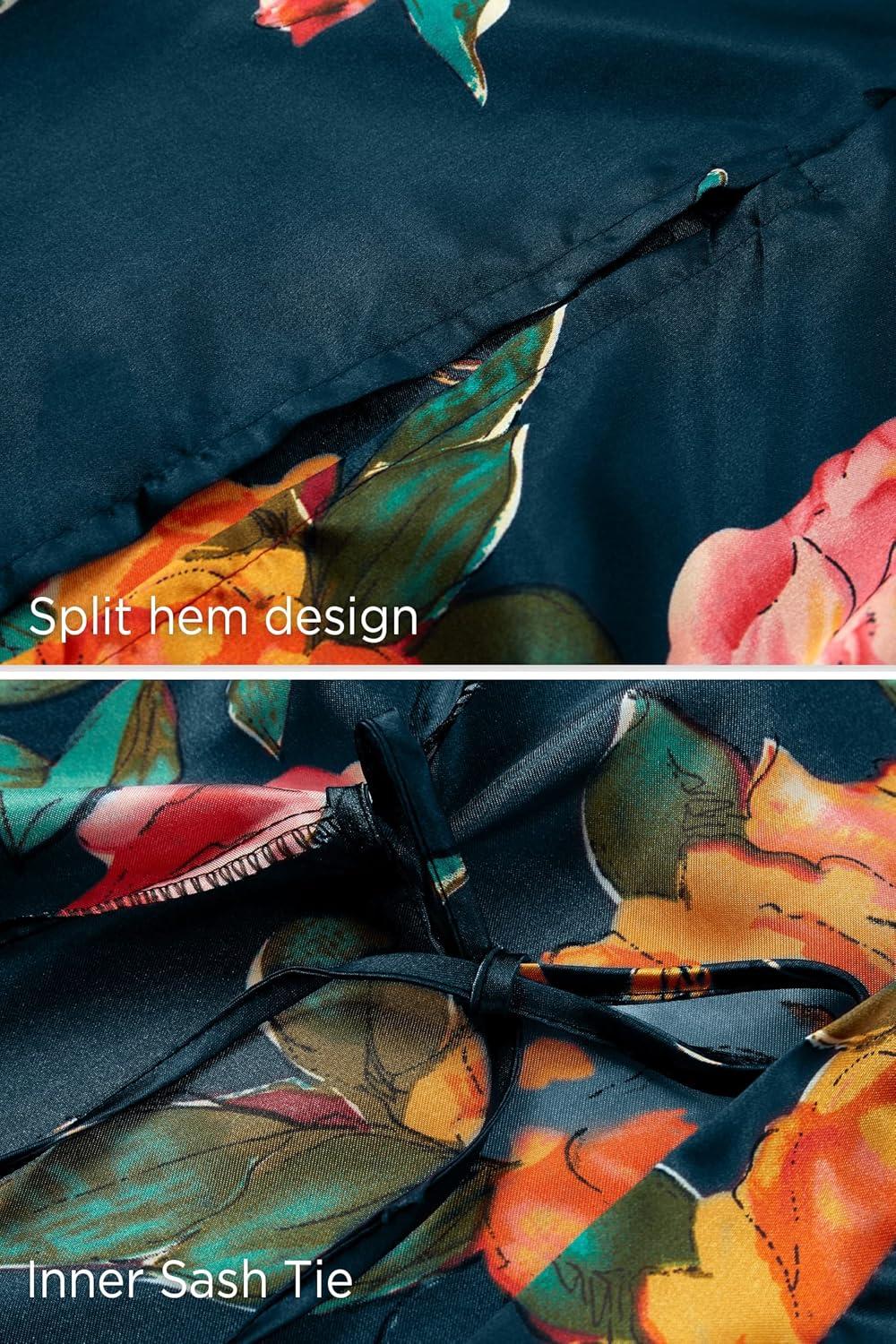 imageBABEYOND Womens Kimono Robe Long Satin Silky Floral Lightweight Bridesmaid Wedding Bachelorette Party RobeDark Green