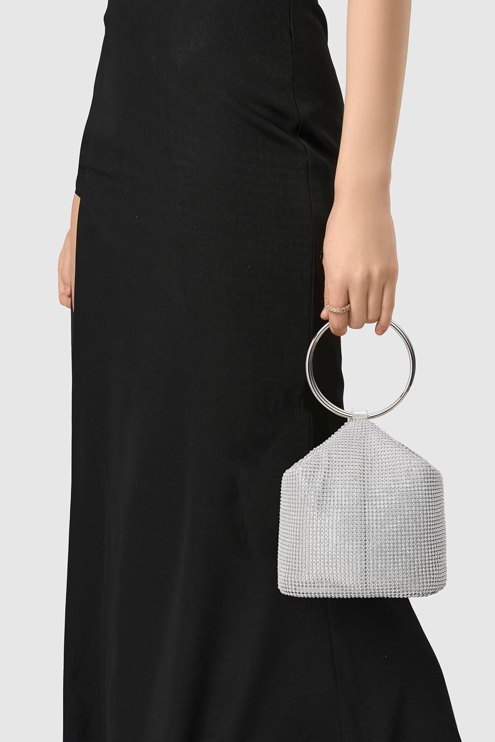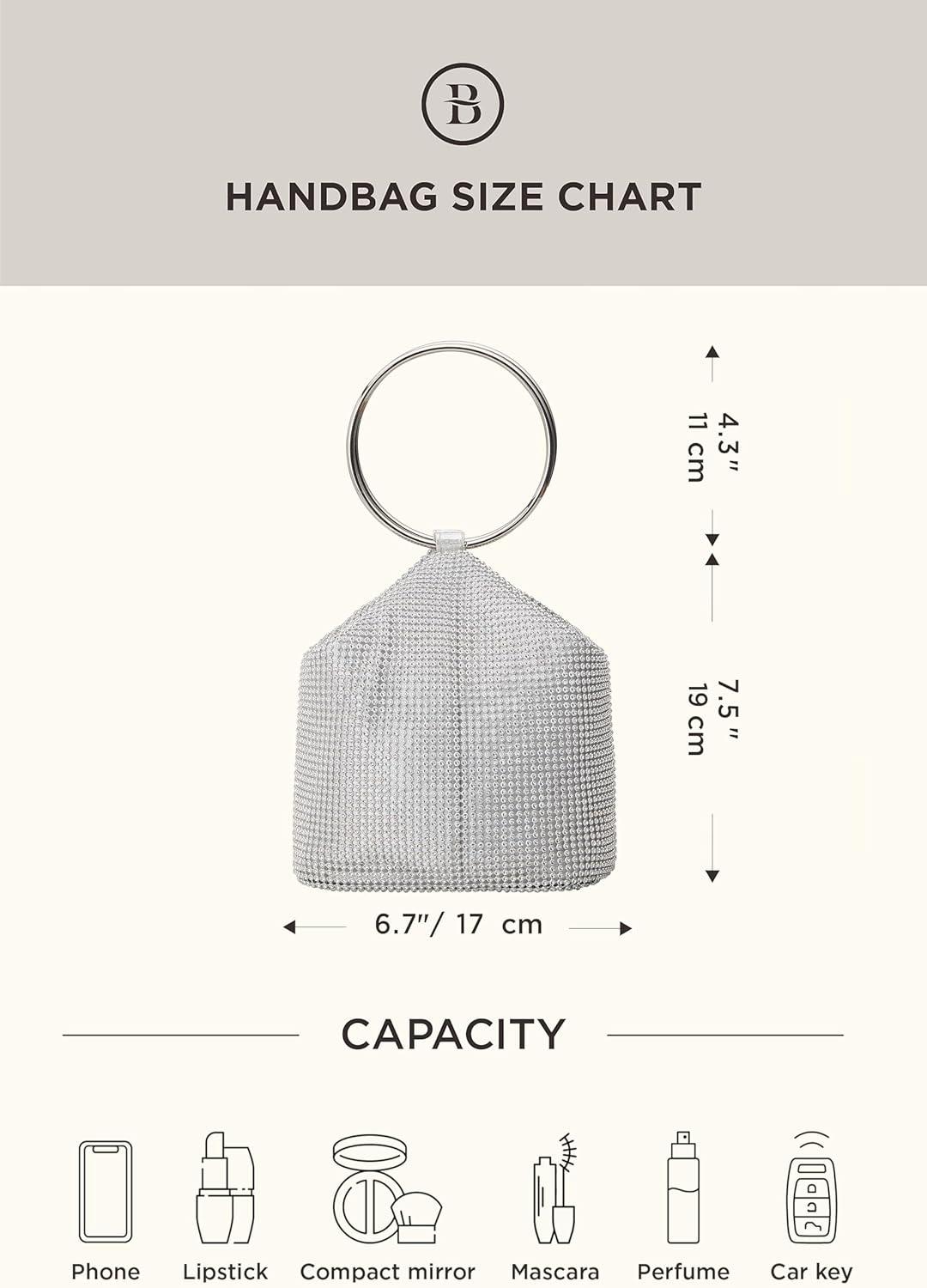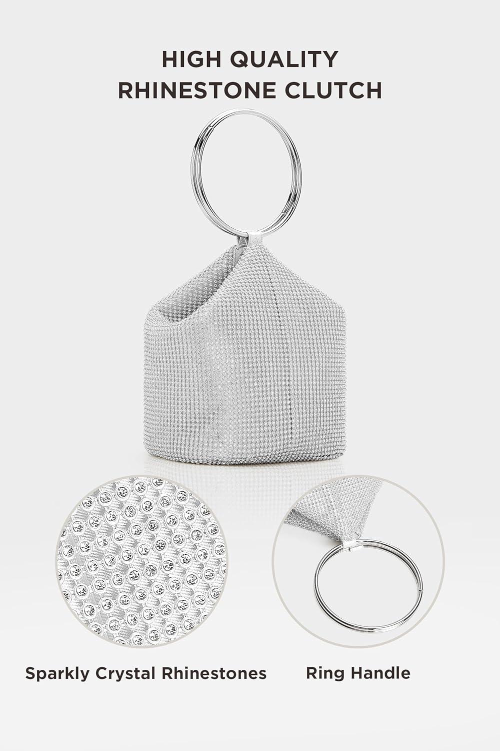 BABEYOND Women’s Rhinestone Clutch Evening Bags Sparkly Glitter Round Handle Purse for 1920s Party Prom Wedding(Silver5)
