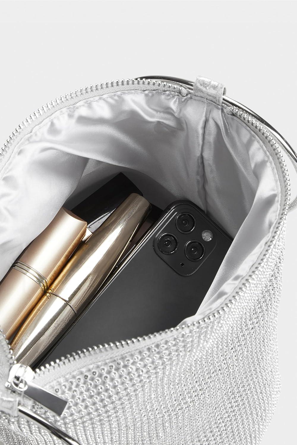 imageBABEYOND Womens Rhinestone Clutch Evening Bags Sparkly Glitter Round Handle Purse for 1920s Party Prom WeddingSilver5