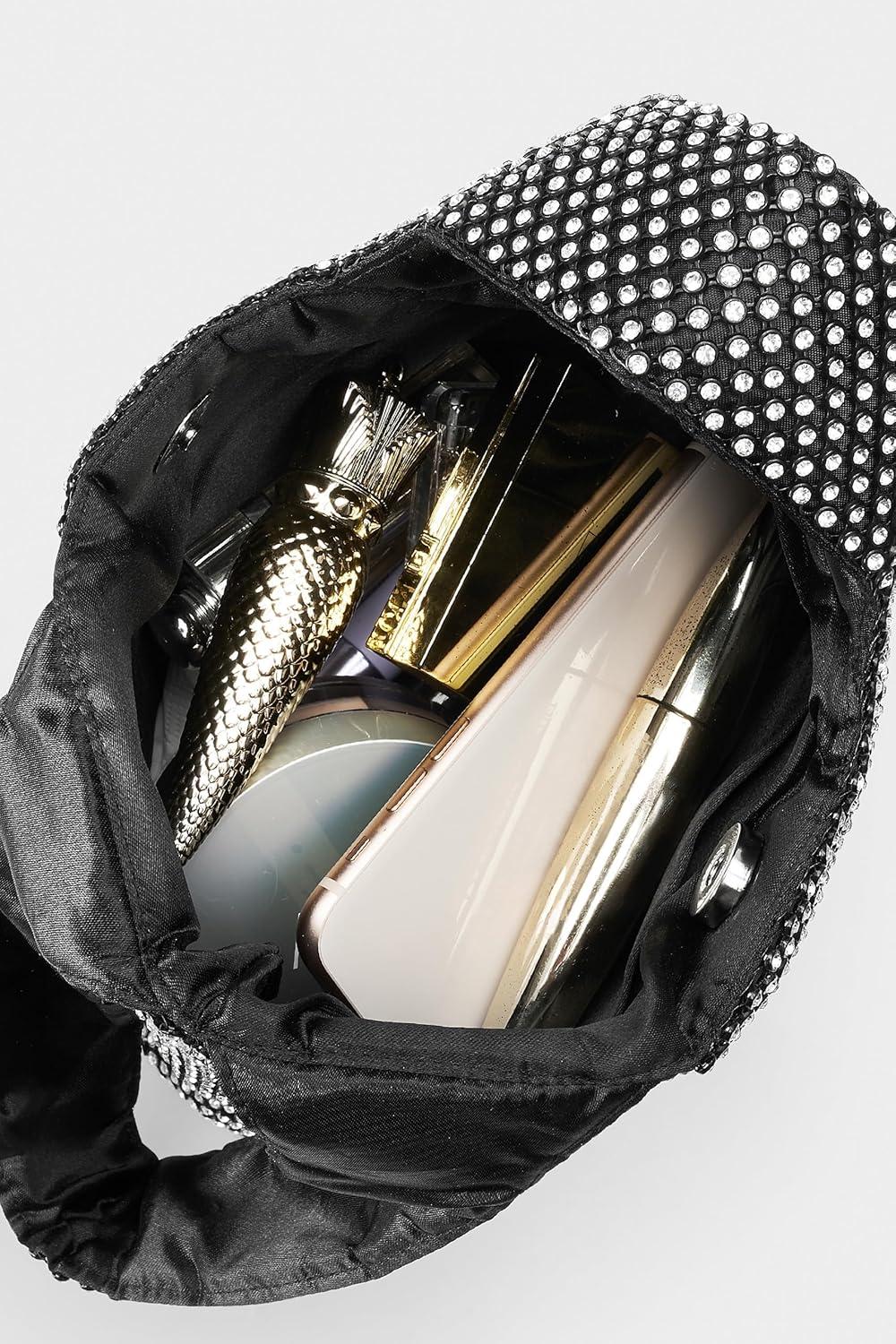 BABEYOND Women's Rhinestone Clutch Evening Bags Sparkly Glitter Wristlet Purses for Party Prom Wedding(Black5)