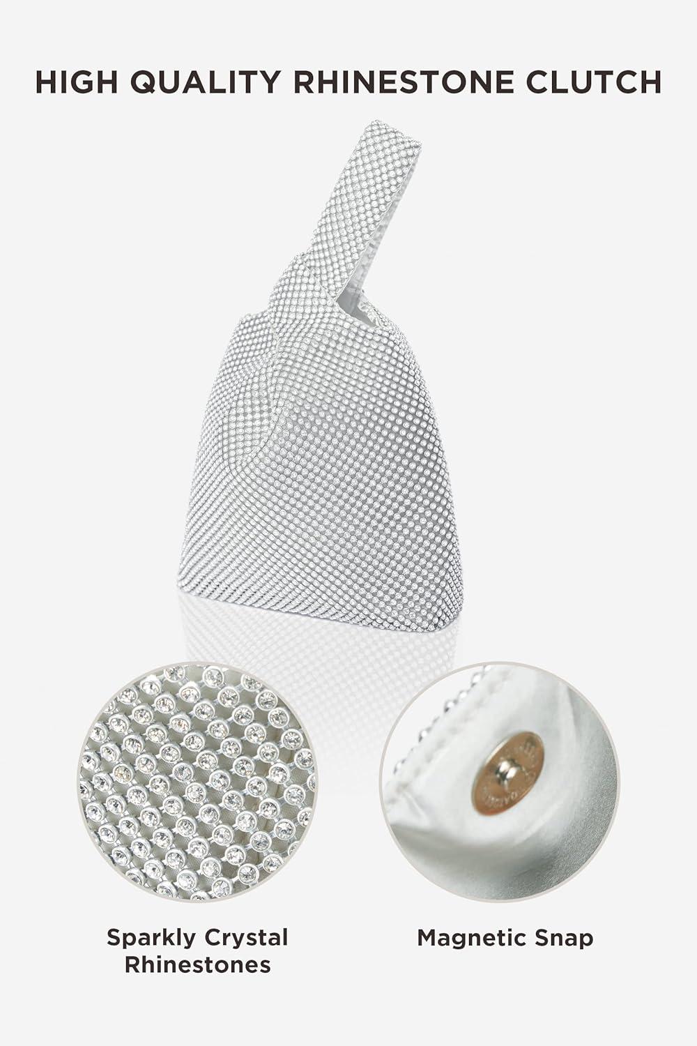 imageBABEYOND Womens Rhinestone Clutch Evening Bags Sparkly Glitter Wristlet Purses for Party Prom WeddingSilver4
