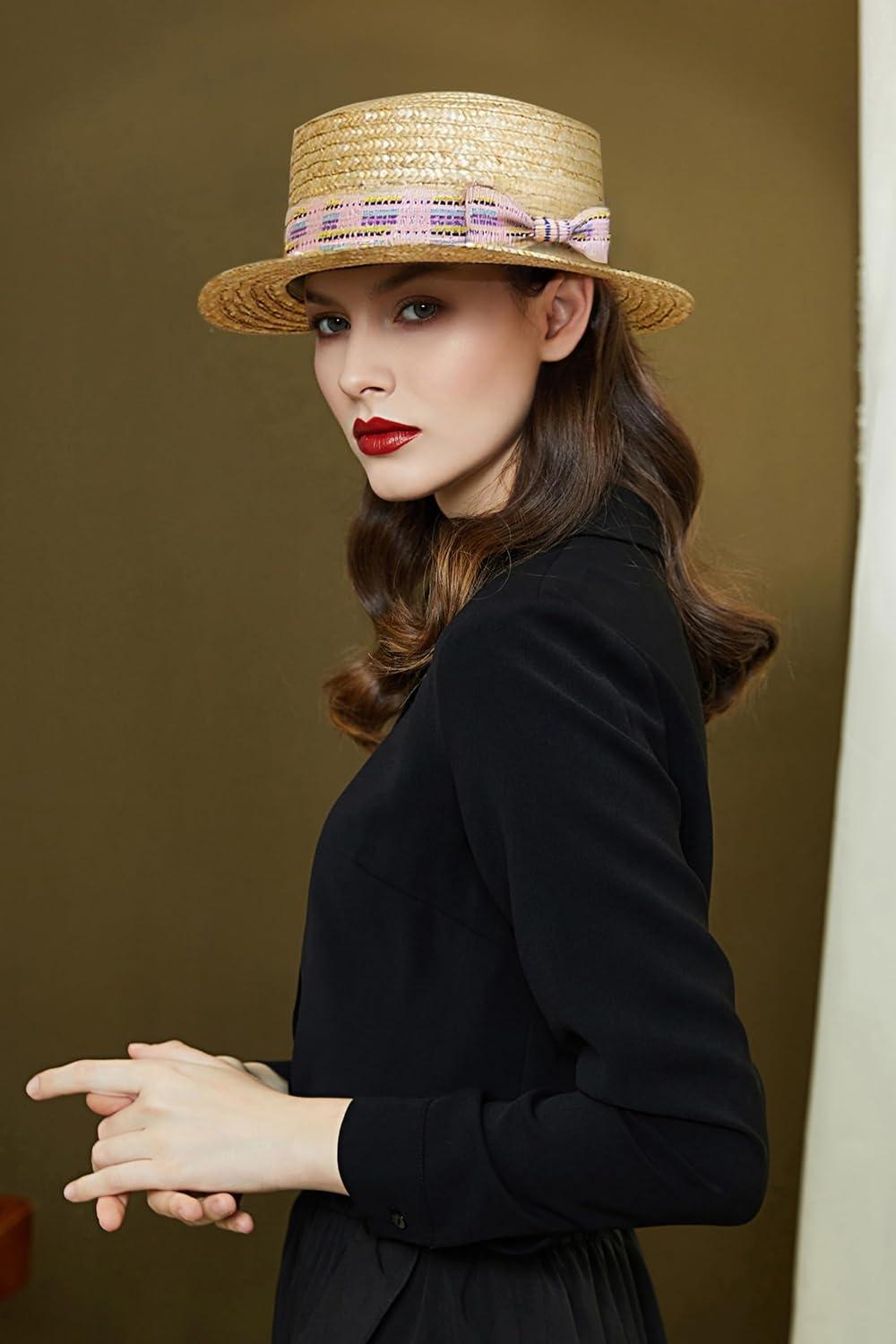 imageBABYOND Mens Brim Boater Hat Gatsby Straw Panama Hat Fedora Summer Beach Sun Hat 20s Costume AccessoriesPink