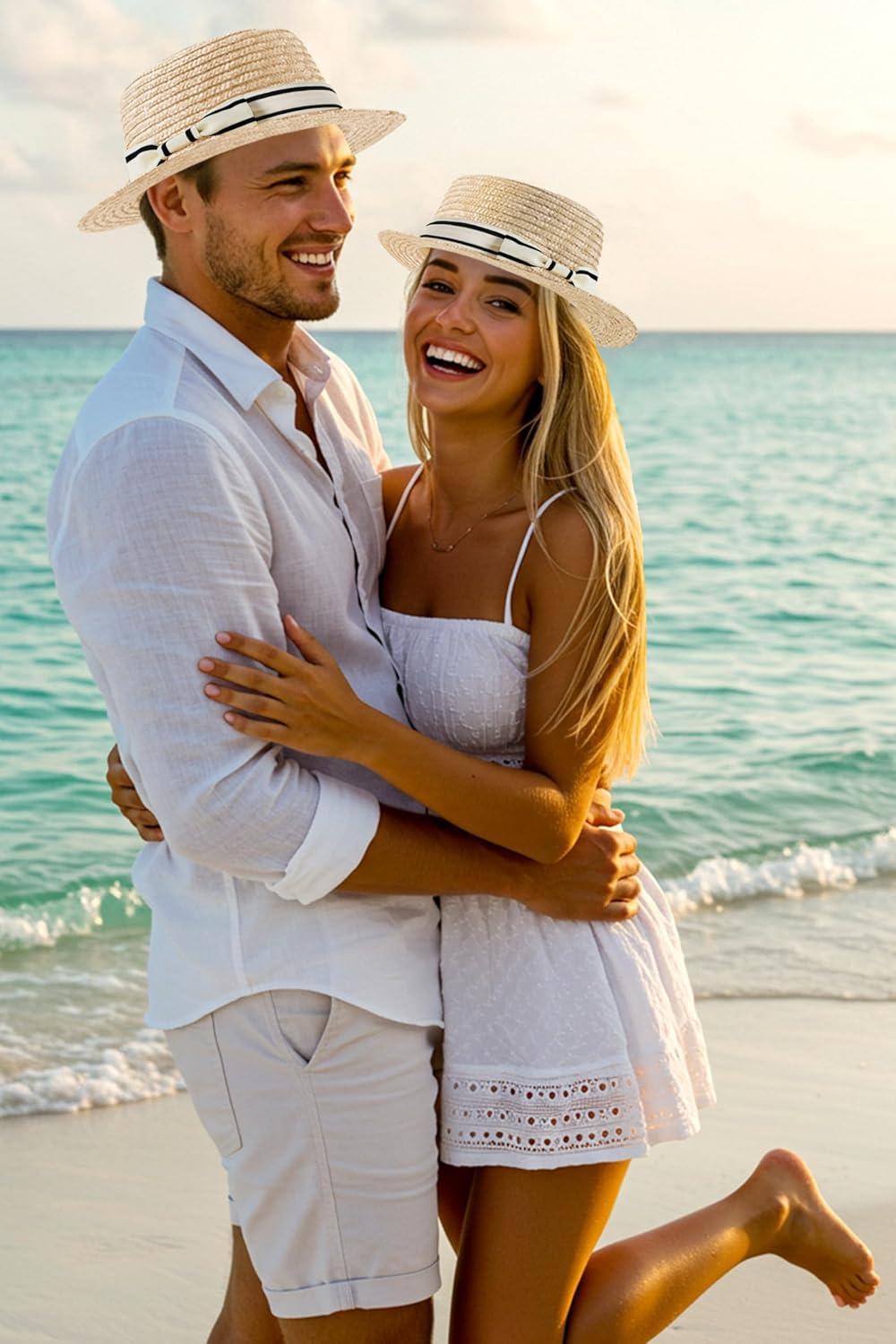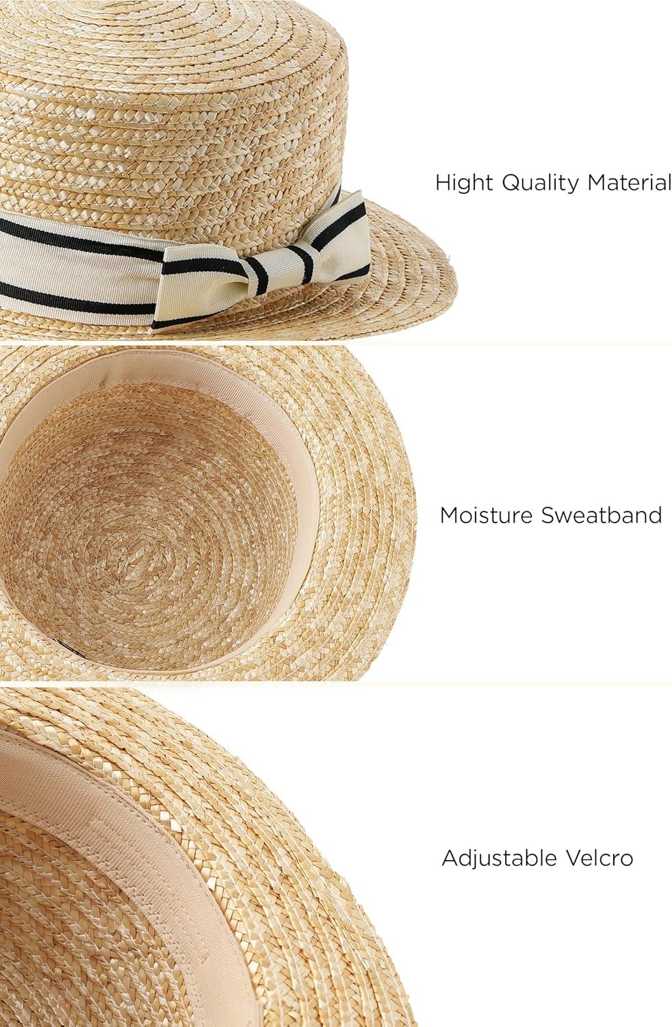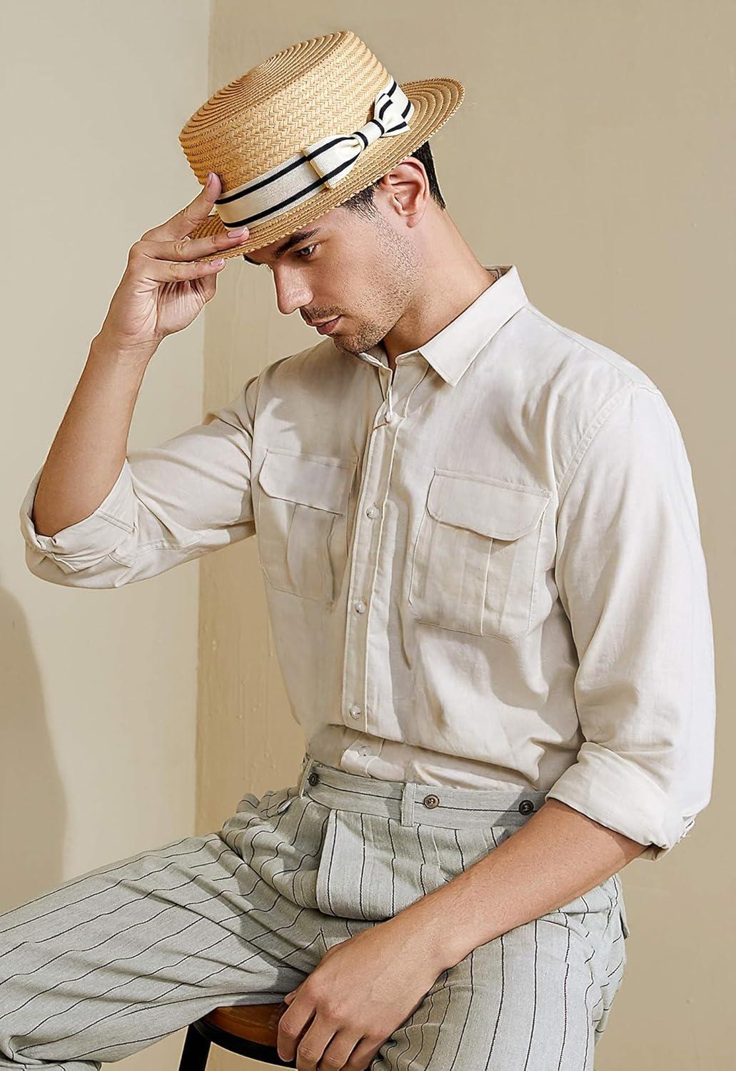 imageBABYOND Mens Brim Boater Hat Gatsby Straw Panama Hat Fedora Summer Beach Sun Hat 20s Costume AccessoriesWhite Black