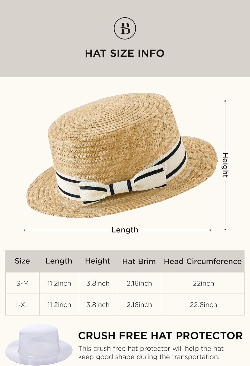BABYOND Mens Brim Boater Hat Gatsby Straw Panama Hat Fedora Summer Beach Sun Hat 20s Costume Accessories(White Black)